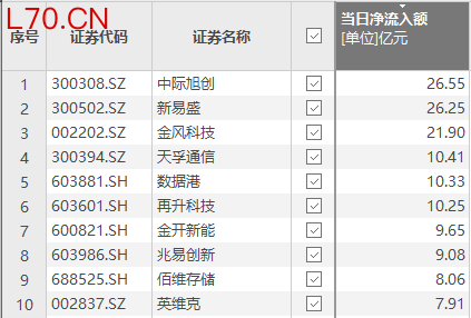 资金风向标 | 中际旭创、新易盛获资金净流入超26亿元