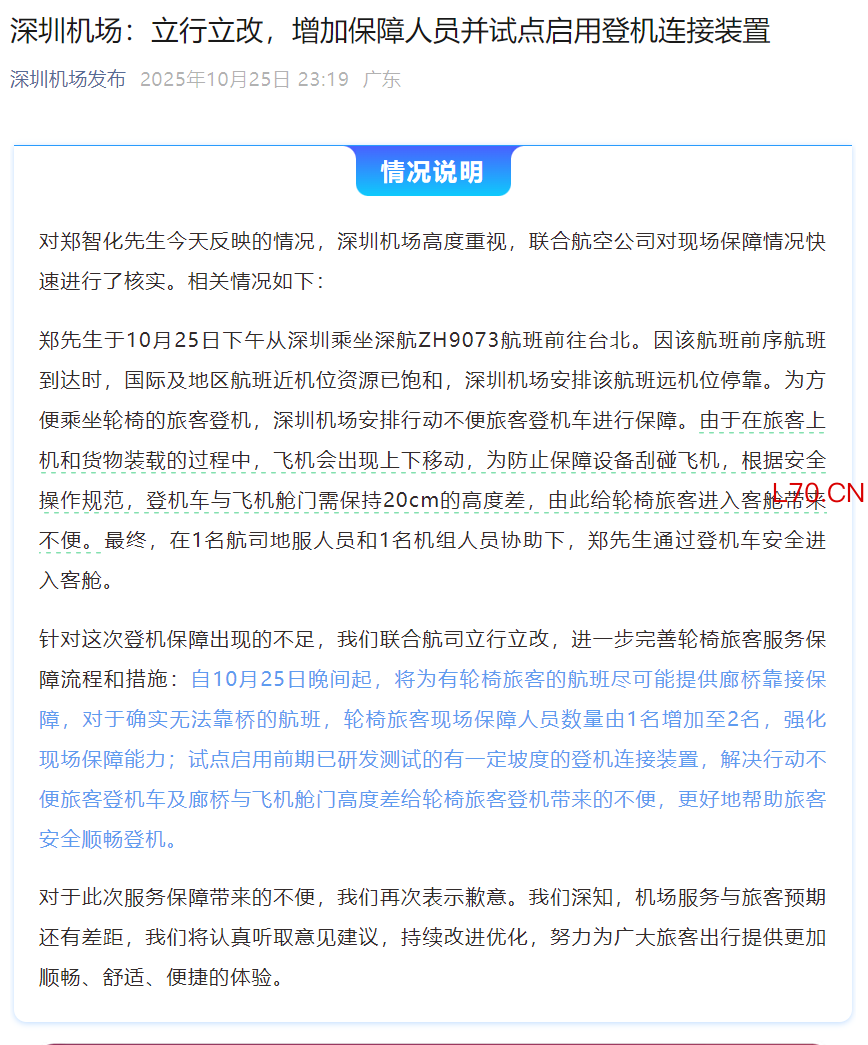 歌手郑智化吐槽“连滚带爬进飞机” 深圳机场回应:立行立改