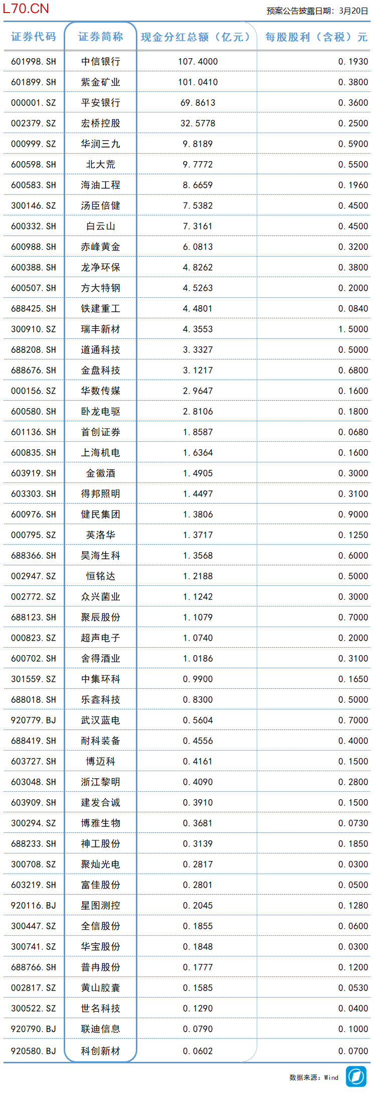年度分红汇总丨这家公司预计派发现金红利超107亿元