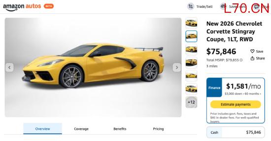 如今,你可以在亚马逊网站上直接购买全新科尔维特跑车。