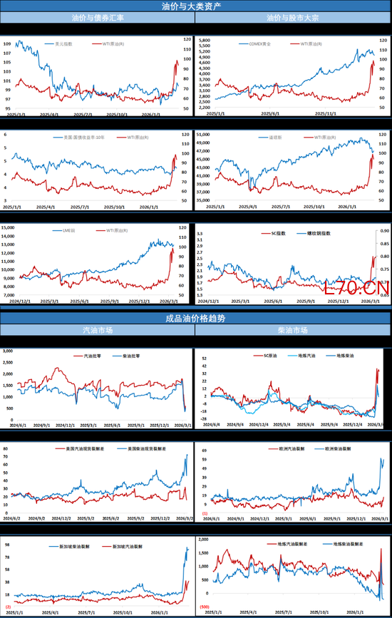 从价格走势来看国内整个能化板块已经在高位连续多日宽幅横盘拉锯,供应紧张局势未改,地缘仍有推涨驱动,但发展过程又有明显的不确定性,整个能化板块用强势的高位震荡来修复超买调整需求,巨大的振幅和反复的走势给投资者节奏把握带来挑战,让投资者犹豫不决。当前美以与伊朗的战斗仍在继续,海峡运输也仍需观察,影响因素仍较为复杂。趋势上油价上涨格局仍在,油价仍有较大概率继续走高,但如果局势没有进一步激化,预计原油会带领能化板块有一个高位宽幅震荡蓄势的过程以等待更多指引,高波动仍是常态,注意节奏把握,谨慎参与。