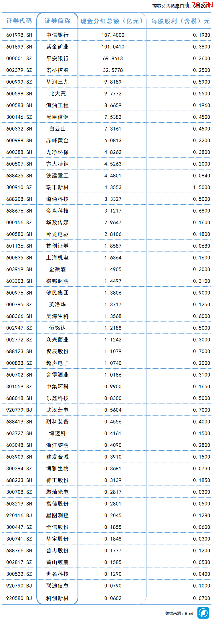 年度分红汇总丨这家公司预计派发现金红利超107亿元